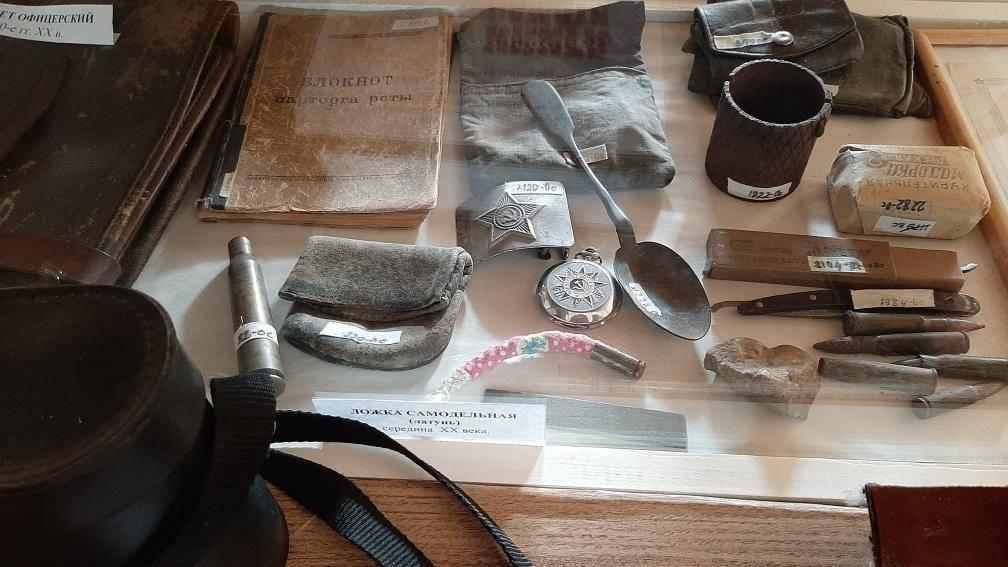 В экспозиции представлена коллекция палеонтологических и археологических находок, коллекция минералов, коллекция медалей и орденов.