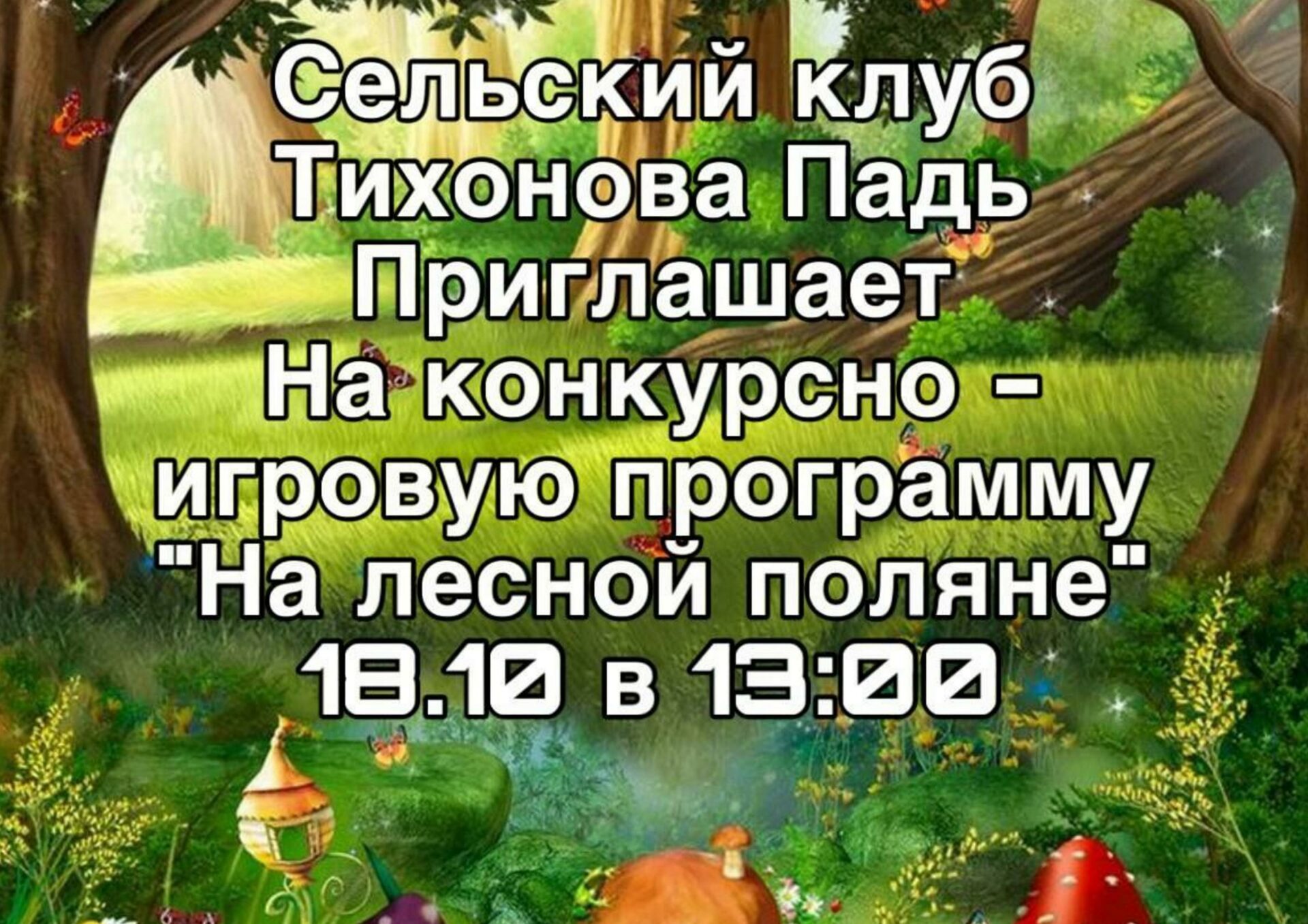 18 октября в Сельском клубе Тихонова Падь, пройдет конкурсная игровая программа «На лесной поляне».