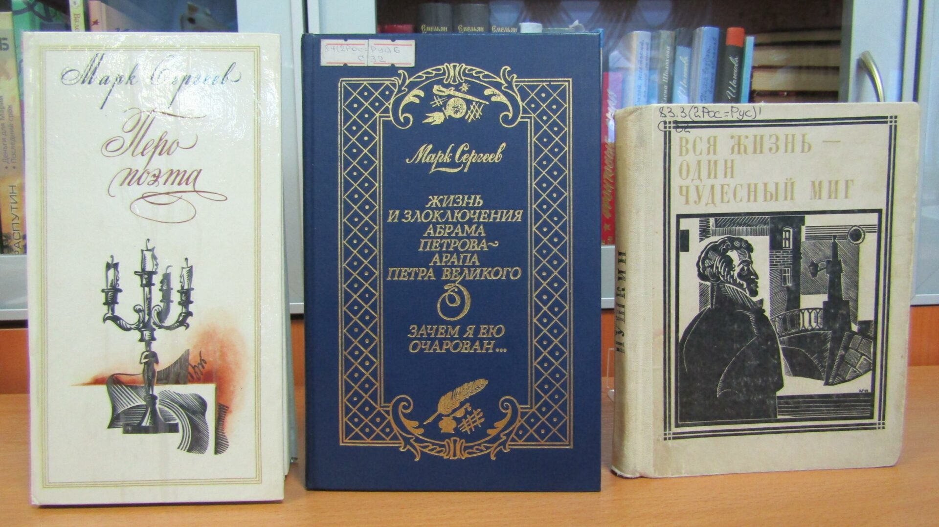 Читатели познакомятся с книгой Марка Сергеева «Жизнь и злоключения Абрама Петрова – арапа Петра Великого», рассказывающей о прадеде Пушкина, который оказался в Иркутске. В историческом повествовании «Перо поэта» Сергеев описывает, как подлинное перо Пушкина, похищенное в 1837 году с его стола, спустя сто лет нашли в Иркутске, а затем оно попало в московский музей Пушкина.