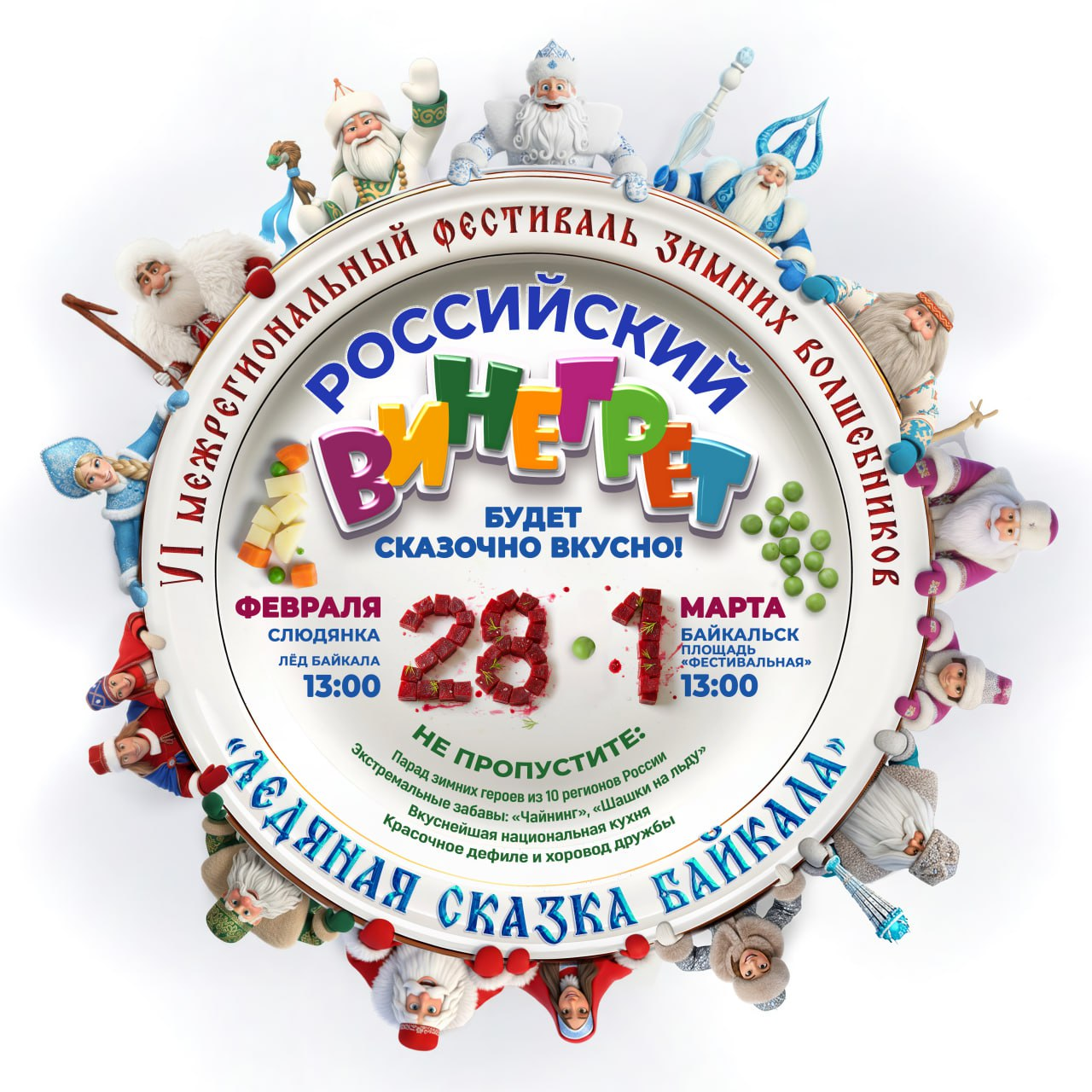 Вас ждут парад зимних героев из 10 регионов России, чайнинг, шашки на льду, национальная кухня, красочное дефиле и хоровод дружбы.