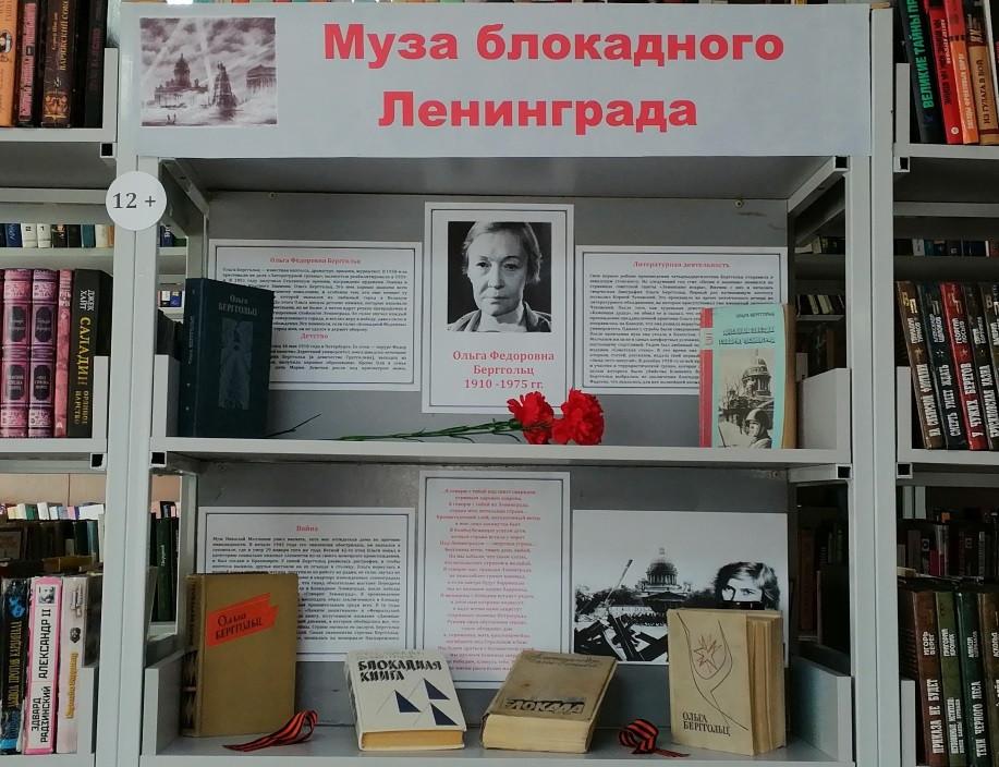 Книжно – звуковая выставка «Муза блокадного Ленинграда» представит биографические материалы, стихотворения, поэмы, рассказы, книги, рассказывающие о блокаде Ленинграда. Выставку дополняют фотографии, отражающие разные этапы жизни Ольги Берггольц. В течении нескольких дней прозвучало много стихов О. Берггольц «Из блокнота сорок первого года», про Ленинград, про людей, солдат, которые жили в блокадном городе. Интересно было послушать звучание стихов в исполнении самой поэтессы.