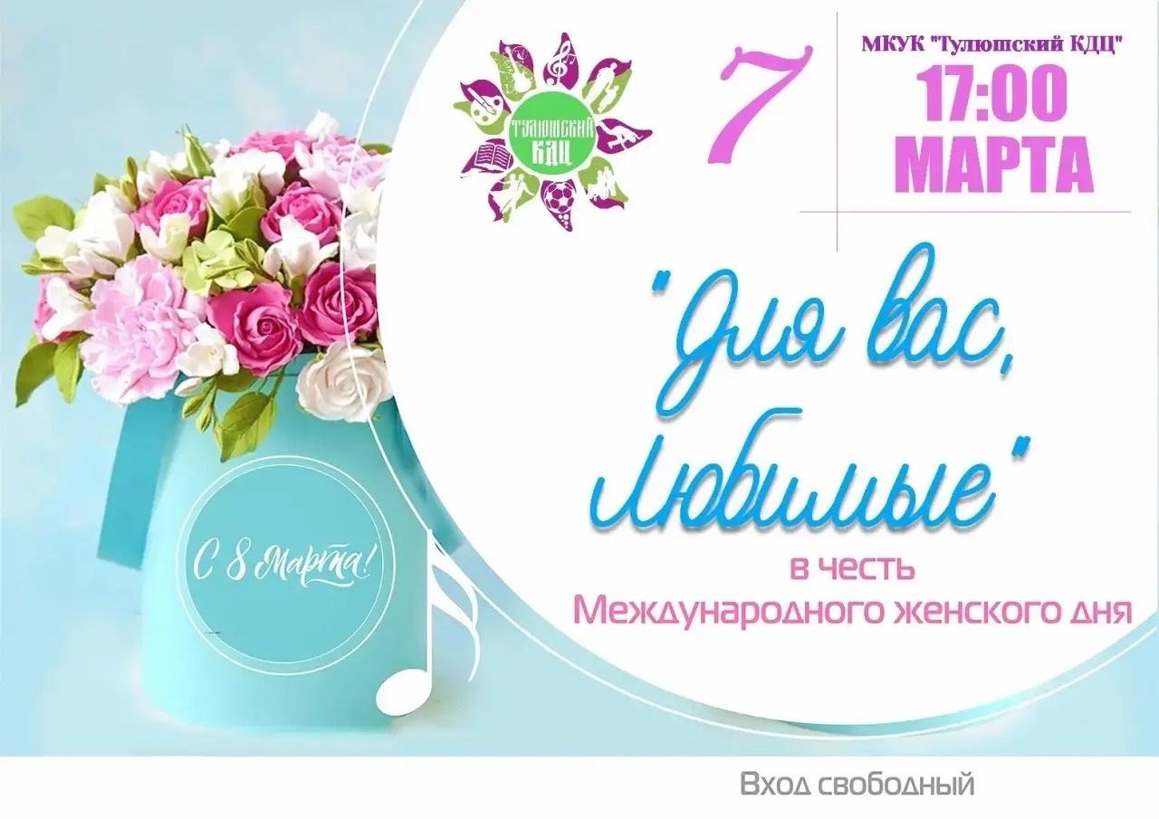 В эту субботу, 7 марта, в стенах нашего любимого МКУК Тулюшский КДЦ состоится яркий и душевный праздничный концерт, посвященный всем прекрасным женщинам!