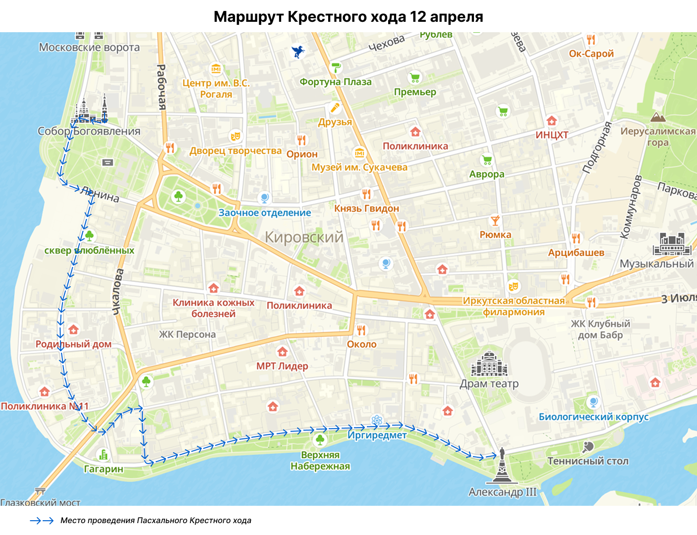 В Иркутске на территории памятнику Александру III пройдёт праздник весны и Светлой Пасхи — городской фестиваль, посвящённый торжеству Воскресения Христова.