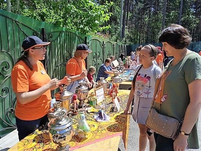 На музейной площадке под открытым небом в развернутой мобильной палатке в форме русской избы будет развернута выставка коллекции самоваров из основного фонда. Посетители смогут не только познакомиться с разными периодами самоварных историй: дореволюционным, советским, современным, но и типами (жАровый самовар, керосиновый, электрический, комбинированный, сувенирный). И, конечно, удивиться самым разным размерам: от двухведерного до самого маленького на один стакан.