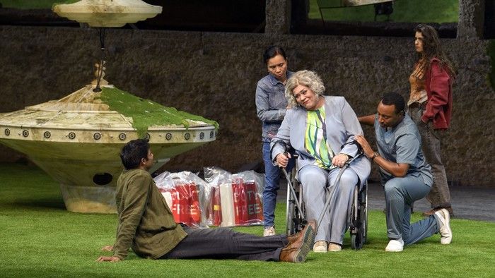 Азарт и страсти, деньги и отчаяние: Асмик Григорян в постановке Селларса по роману Достоевского.Прокофьев упростил и оптимизировал сюжет «Игрока» Достоевского, сократив количество актеров до десяти, а Питер Селларс, удивительно эффектно обыграв специфическое пространство зальцбургской сцены Фельзенрайтшуле, осовременил и политизировал события. Сотовые телефоны, электронные письма, экопротесты и морализаторство, осуждающее капитализм, — и все это на фоне настоящего светового шоу с огромными рулетками, взмывающими в воздух, как НЛО.Кто из персонажей тот самый Игрок? Возможно, отставной Генерал в исполнении китайского баса Пэйсинь Чэня или его родственница Бабуленька (Виолета Урмана). Или учитель генеральских детей Алексей (Шон Паниккар). Или она — роковая женщина Полина, блестящая литовская сопрано Асмик Григорян? Обладая невероятным личным магнетизмом и мощным, драматическим голосом, эта уникальная артистка становится центром сложной интриги.Венский филармонический оркестр под руководством Тимура Зангиева представляет поистине великолепный звуковой ландшафт. В тонко сбалансированных пассажах — все желания и разочарования душ, балансирующих на грани разрушения, которые исследуются в шедевре Достоевского, досконально изучены в партитуре и наконец слились в захватывающую звуковую «психограмму» глубин человеческой натуры.Действие «Игрока» С.Прокофьева по одноименному роману Ф.М.Достоевского разворачивается в вымышленном городе Рулеттенбурге, месте встречи разных людей с разными интересами и конфликтами. Среди этих людей — отставной генерал, задолжавший алчному маркизу; племянница генерала Полина и влюбленный в нее Алексей. Режиссер Питер Селларс, известный своими глубокими интерпретациями не самых известных шедевров, ставит перед нами задачу последовать примеру Достоевского и Прокофьева и отважно заглянуть в глаза собственным внутренним демонам. Музыкальное руководство российского дирижера Тимура Зангиева прекрасно оттеняет блестящих вокалистов: «Асмик Григорян поет страстную Полину, а Шон Паниккар великолепно справляется с партией Алексея» (Financial Times).