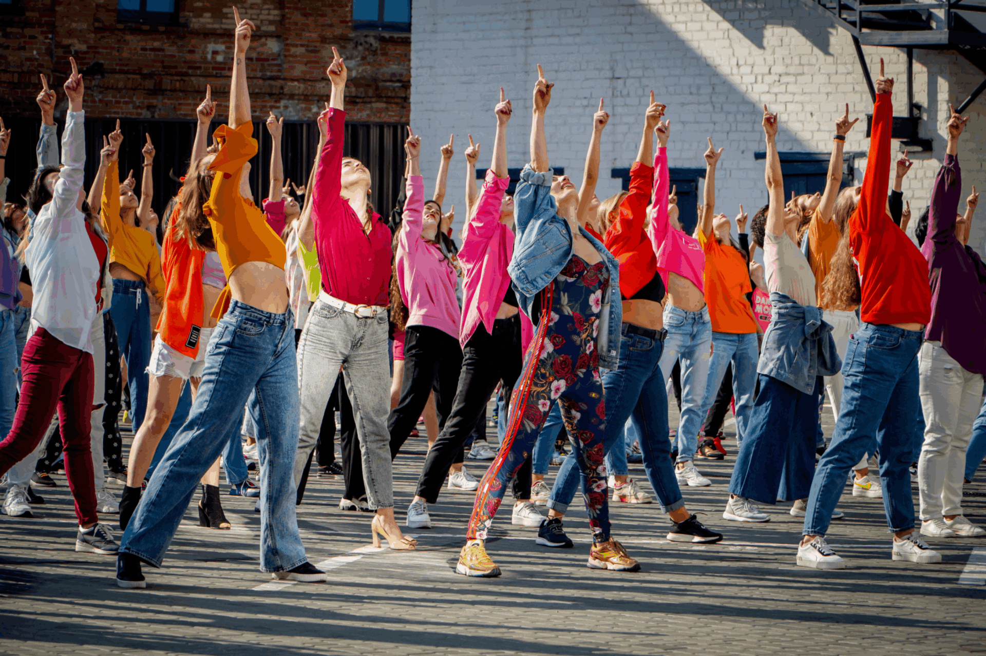 массовый танцевальный флешмоб на свежем воздухе;