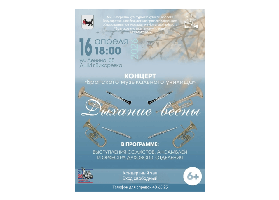 Вихоревская детская школа искусств с радостью приглашает на концерт отделения оркестровых духовых инструментов Братского музыкального училища 🎼