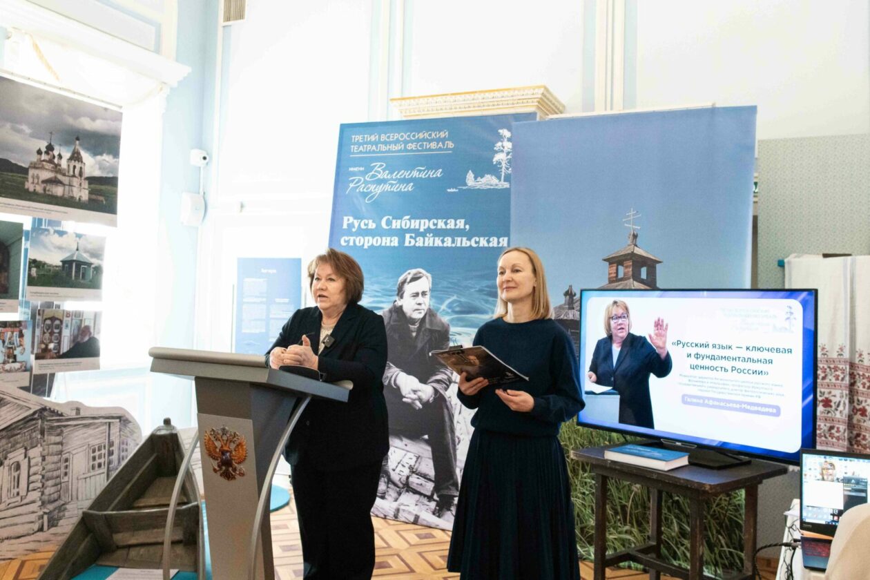 В 13:00 в голубом зале Иркутского драматического театра начался круглый стол, посвящённый русскому языку как ключевой и фундаментальной ценности России. Модератором увлечённого и продуктивного обсуждения животрепещущей темы выступила директор Регионального центра русского языка, фольклора и этнографии Галина Афанасьева-Медведева.