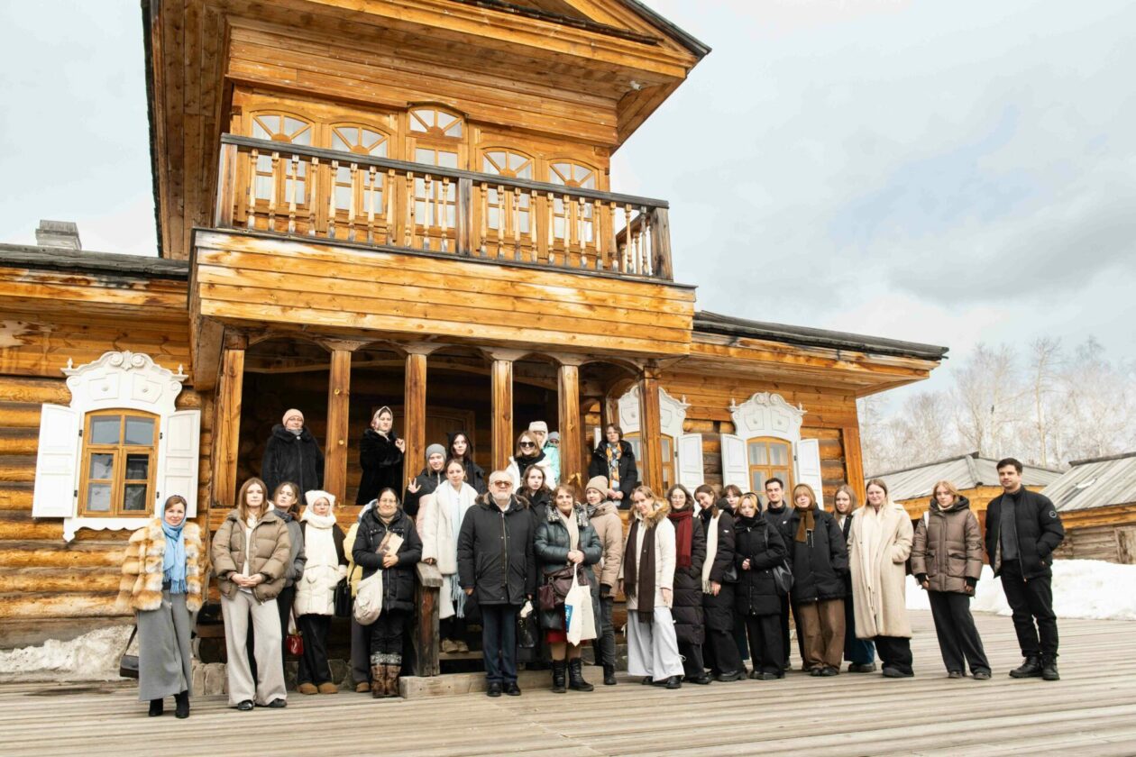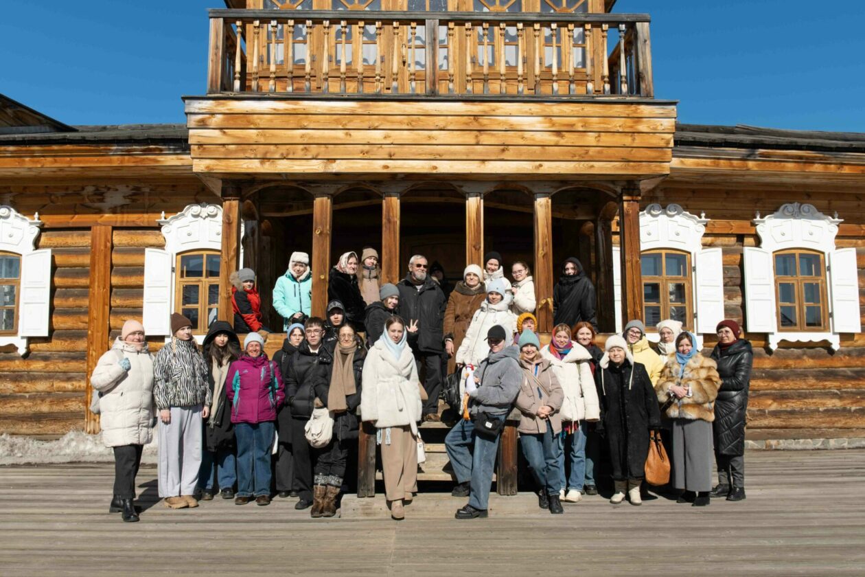 Ранним утром гости III Всероссийского театрального фестиваля отправились в архитектурно-этнографический музей под открытым небом. Здесь, в «Тальцах», в усадьбе купца Воинова прошли две творческие встречи. Сложно представить себе более подходящее место для разговора о прозе одного из лучших писателей-деревенщиков, чем здесь, среди вековых деревянных домов, рядом с Троицкой церковью. А чуть дальше — Казанская церковь Илимского острога.