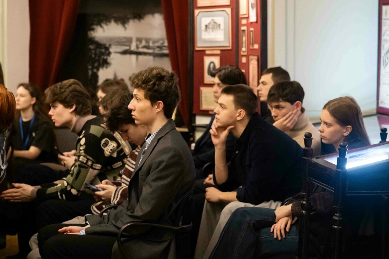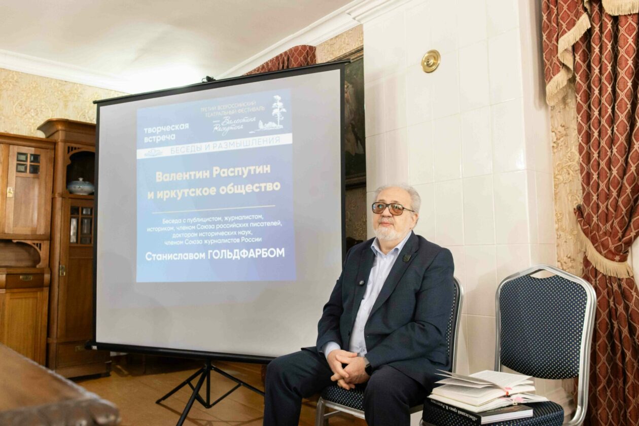 В 13:00 творческая встреча «Валентин Распутин и иркутское общество» — беседа с публицистом, журналистом, историком, членом Союза российских писателей, доктором исторических наук, членом Союза журналистов России Станиславом Гольдфарбом. Автор сорока монографий, связанных с историей родного края, несколько дней назад был удостоен специального диплома Национальной литературной премии им. В. Г. Распутина за книгу «Последний срок». Эта книга – не просто издание, а масштабная хроника одного триумфального спектакля, который шёл на сцене Иркутского драмтеатра с 2008 по 2023 годы. Лучшего спикера для разговора на стыке истории, литературоведения и культурологии, сложно представить. Творческая встреча пролетела в увлеченном обсуждении, в котором активное участие принимали студенты ИГУ направления «журналистика».