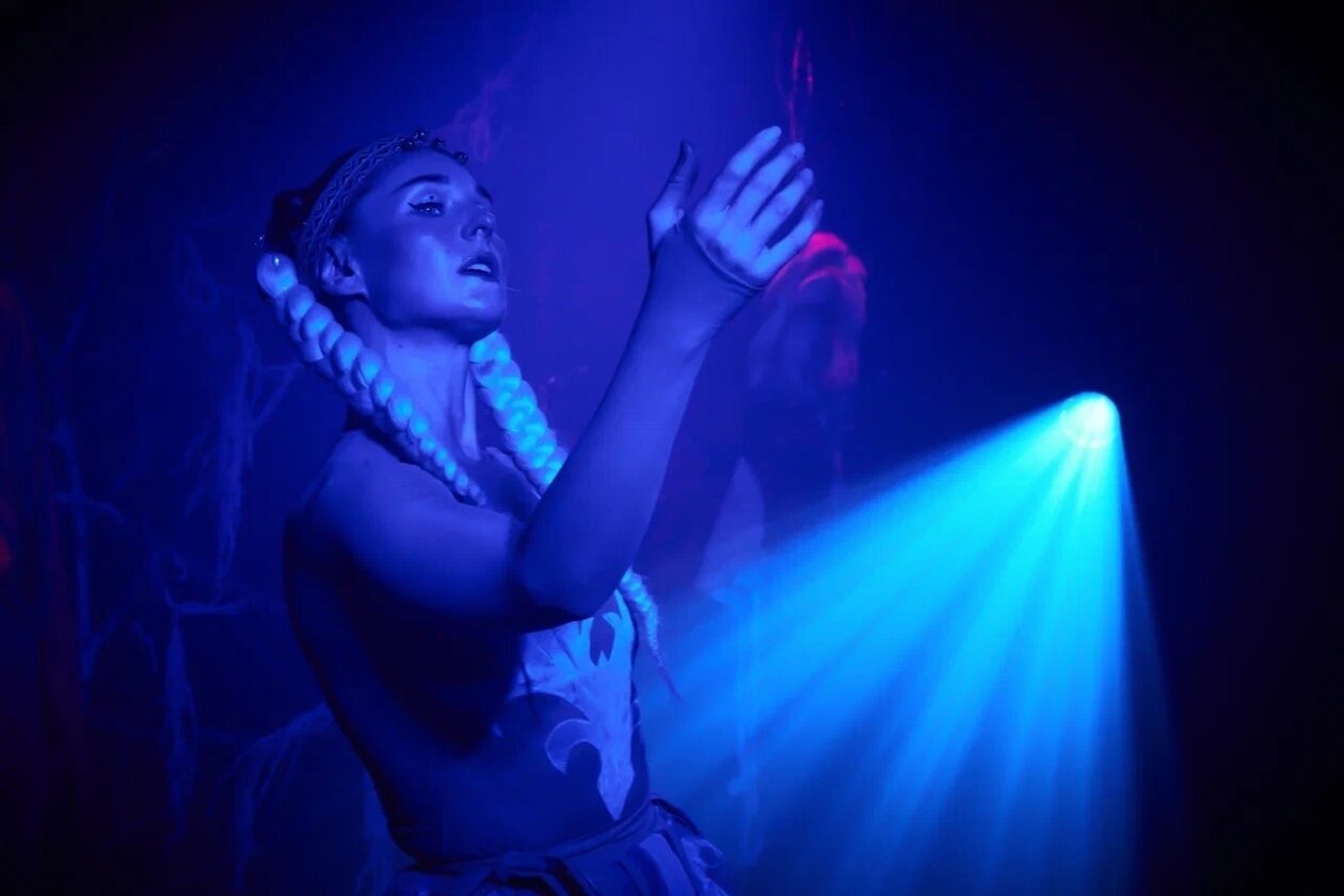 — В ГИТИСе были разные музыкальные разделы, и один них — «Этническая музыка», мой самый любимый. Мне хотелось освоить горловое пение. Два года учёбы я занималась, буквально промучилась, болели связки, я плакала. Только к экзамену появились проблески горлового пения. Это очень сложно. Пришло осознание, что пока я сама не найду в себе этот звук, то его не будет. Вот сейчас постепенно получается. Мне страшно, что он может пропадать, пока всё ещё не могу выйти на плотный звук. На премьере я немного болела, и было хорошо по звучанию. Хочу развивать это и дальше.