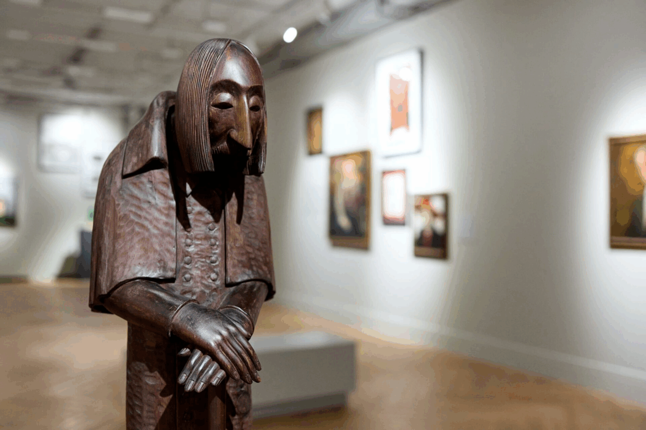 В экспозиции представлено несколько циклов: «Великие художники и писатели» — ироничные портреты известных творцов, которые предстают живыми людьми со своими характерами и слабостями; «Христианские притчи» — серия скульптур по мотивам евангельских сюжетов, и цикл, посвящённый античным мифам, — переосмысление известных легенд Древней Греции.
