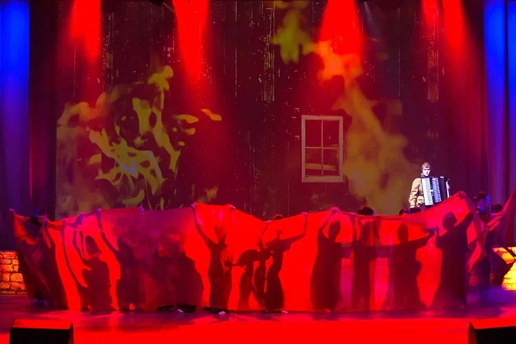 Это сложная техника, требующая от участников спектакля глубокого погружения в образ. С помощью специальных световых акцентов и пластического рисунка мы постарались достоверно, с документальной точностью выстроить многочисленные картины спектакля. То, что зритель привык видеть на чёрно-белых фотографиях, вдруг оживает здесь и сейчас