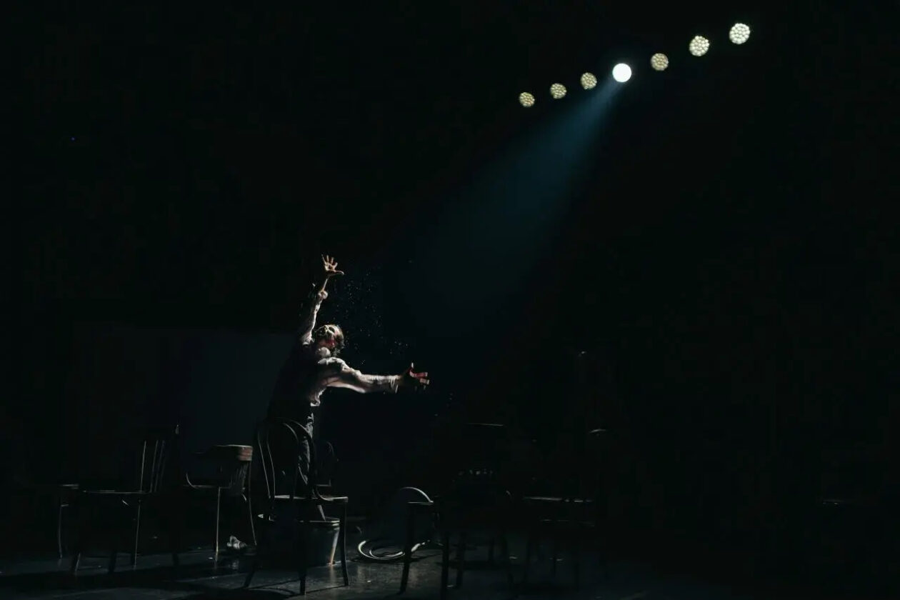 Сценография у нас была в формате старого кинотеатра: герои как будто играли в старом кино. Я старалась подсветить актёров так, чтобы создать атмосферу фильмов 50–60‑х годов. Получилось довольно «кукольно»: актёры выступали в узких, нетипичных световых лучах, но при этом на сцене были только люди, без кукол