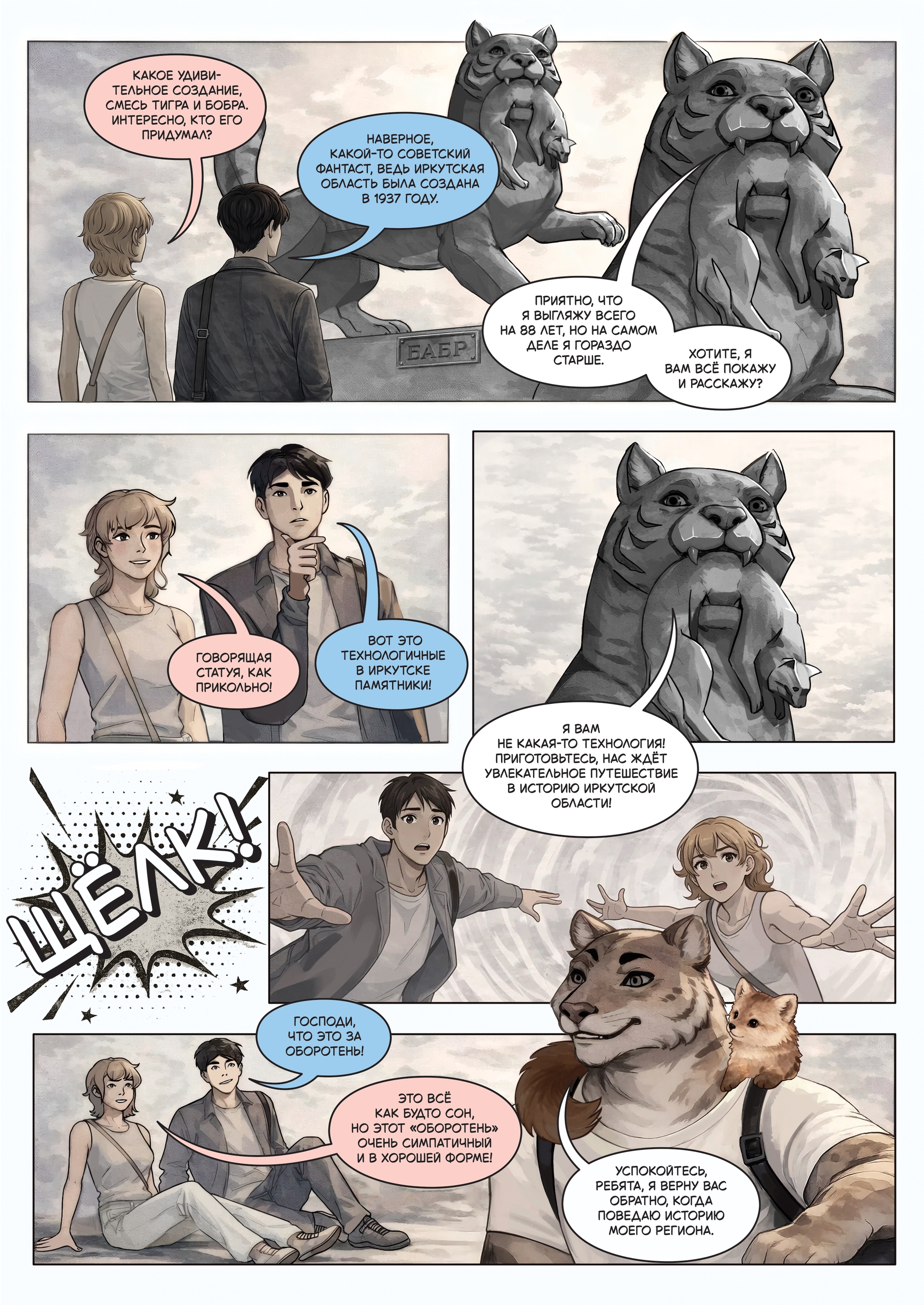 Авторы постарались отразить, как появились первые поселения русских на территории Иркутской области и почему на гербе региона изображён чудный зверь, включающий в себя черты тигра и бобра. Главные герои комикса — подростки Даня и Маша путешествуют во времени вместе с ожившим символом региона — мифическим Бабром. Они знакомятся с историей Иркутской области.