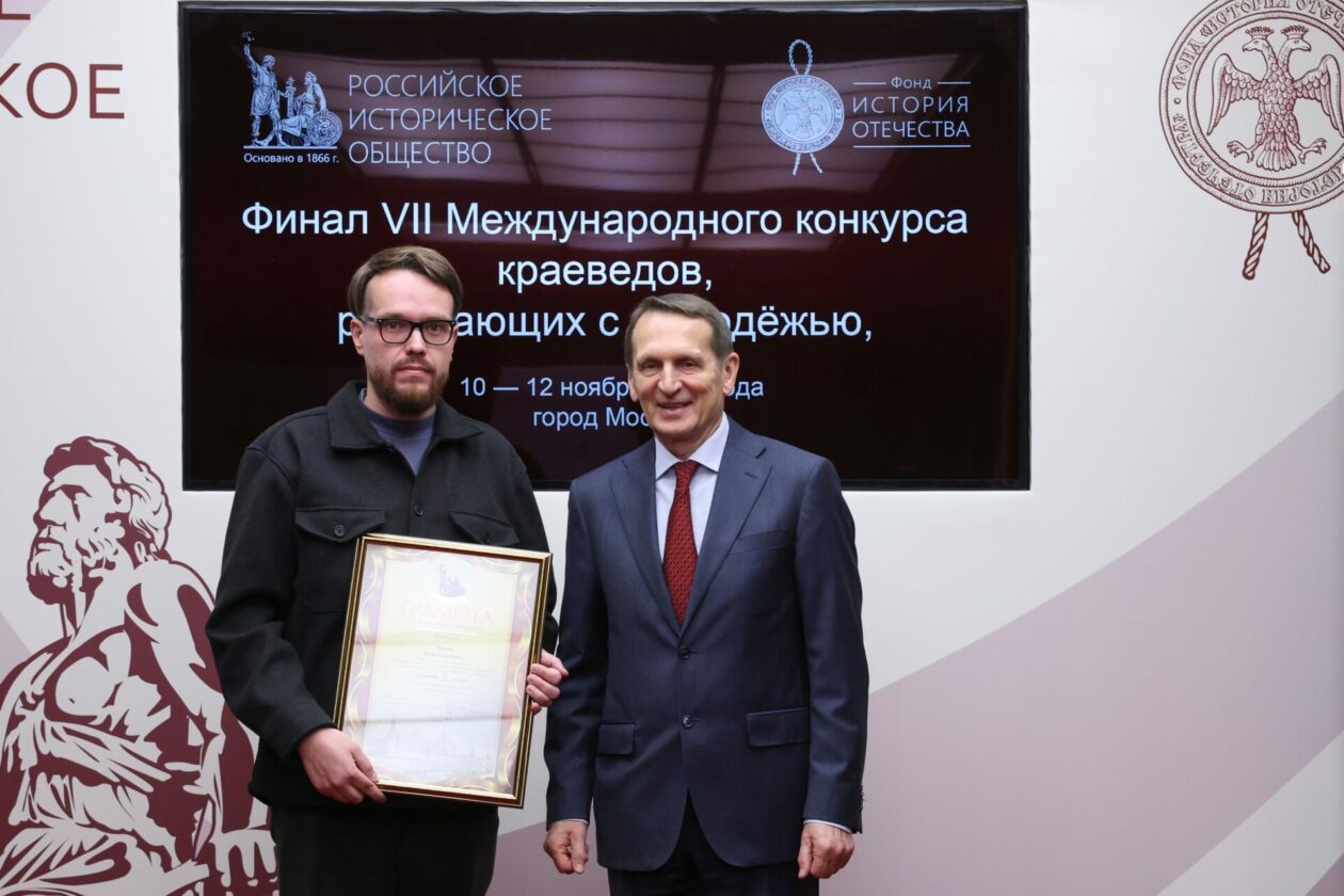 Двое участников из Иркутска заняли первые места в VII Международном конкурсе краеведов, работающих с молодёжью. Церемония награждения состоялась в Доме Российского исторического общества в Москве 12 ноября.