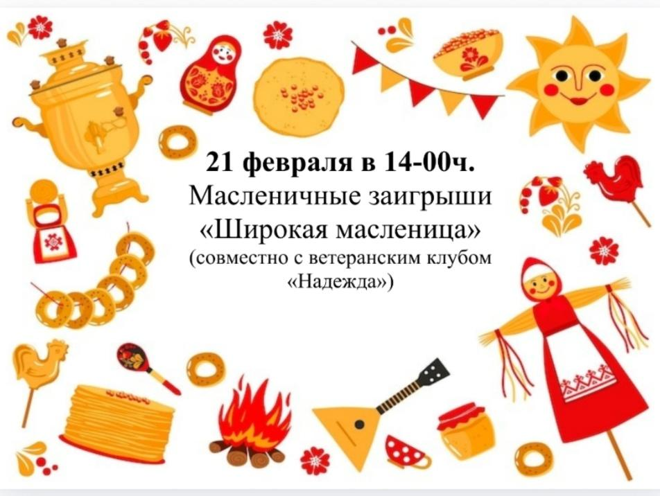 Культурно-досуговый центр села Бадар приглашает на народное массовое гуляние. В программе — ярмарочные ряды с блинами и горячими напитками, русские народные игры и развлечения для взрослых и детей, соревнования по перетягиванию каната и стрельбе из лука, а также торжественное сожжение чучела Масленицы в конце праздника.