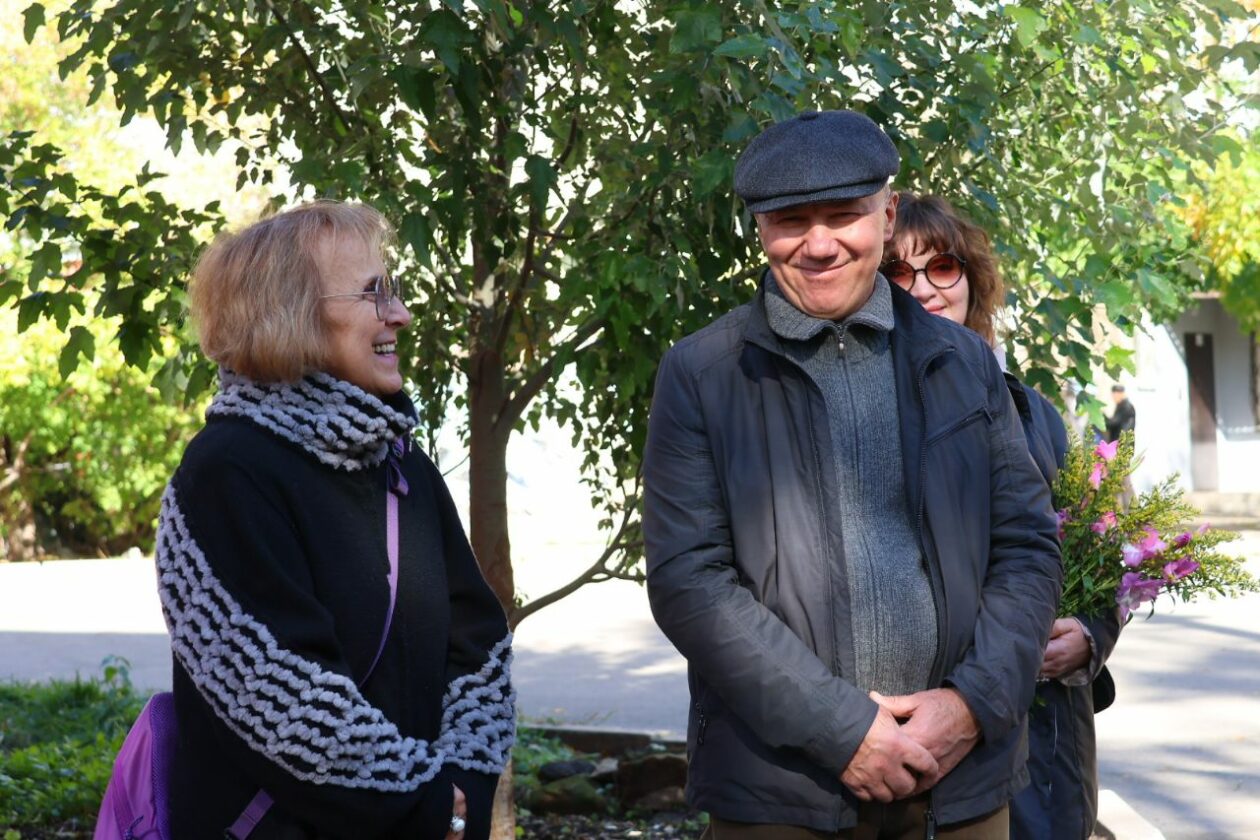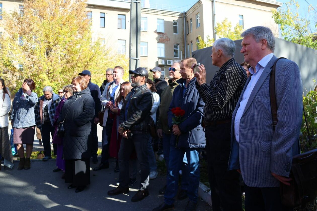 Мы по времени приближаемся уже к пятой юбилейной церемонии вручения премии имени Марка Мееровича и решили, что самое время установить доску на домик, который Марк очень любил, где он жил многие годы. Открываем необычную, не банальную мемориальную доску. У нас даже не было вопросов, кого попросить заниматься проектом этой доски, потому что он делал и памятник на могиле Марка Григорьевича, и дизайн дипломов премии его имени