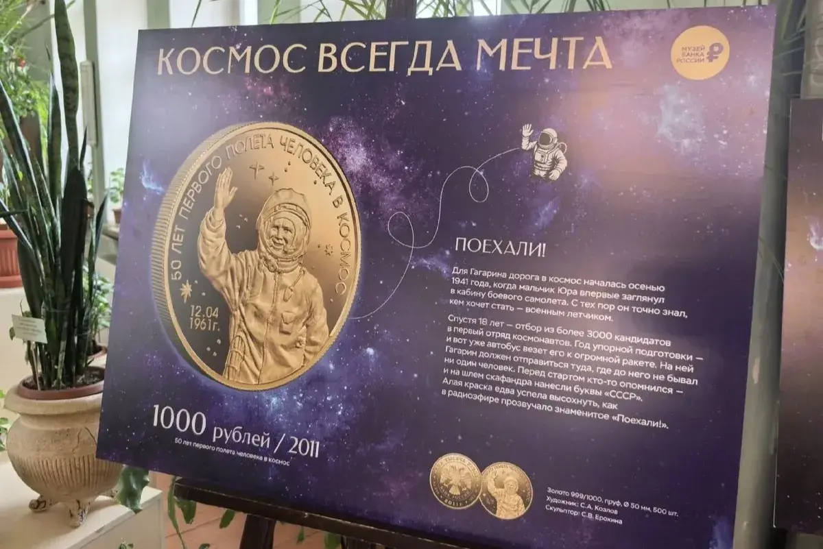 На планшетную выставку «Космос всегда мечта» приглашают в Усадьбу В. П. Сукачёва. Увеличенные изображения монет, связанных с покорением космоса, представил Банк России.
