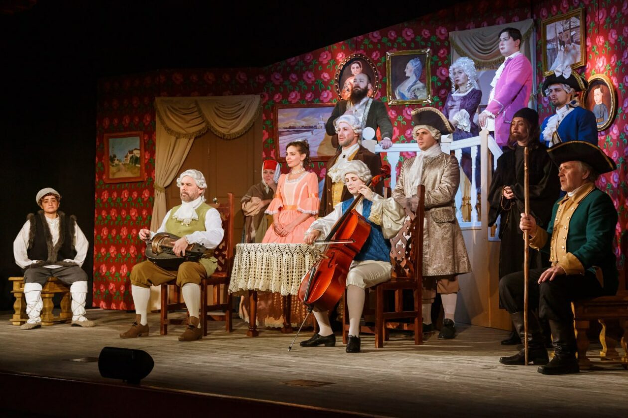 Духовные песнопения добавили действию глубины и подчеркнули главную мысль автора, а также настроили зрителя на восприятие философской стороны пьесы. Погрузить ценителей театрального искусства в ту эпоху через музыкальную канву спектакля помогли старинные инструменты, прозвучавшие в постановке: колесная лира, гусли и виолончель. И, конечно, тщательно проработанные костюмы и декорации, сыграли огромную роль в воссоздании на сцене почерка дворянства России XVIII века. Художественный и пошивочный цеха театра работали над этим несколько месяцев.