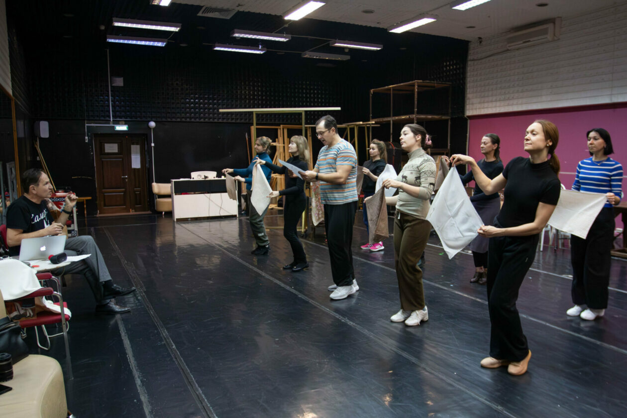 Для меня это работа с метафорами. Перформанс становится моделью возможного диалога мужского и женского начал. Многоголосие хора десяти женщин, состоящее из разных тембров и судеб, сливается в один метафорический образ героини — Женщины. А Мужчина — он архитектор, который даёт строй и гармонию их голосам