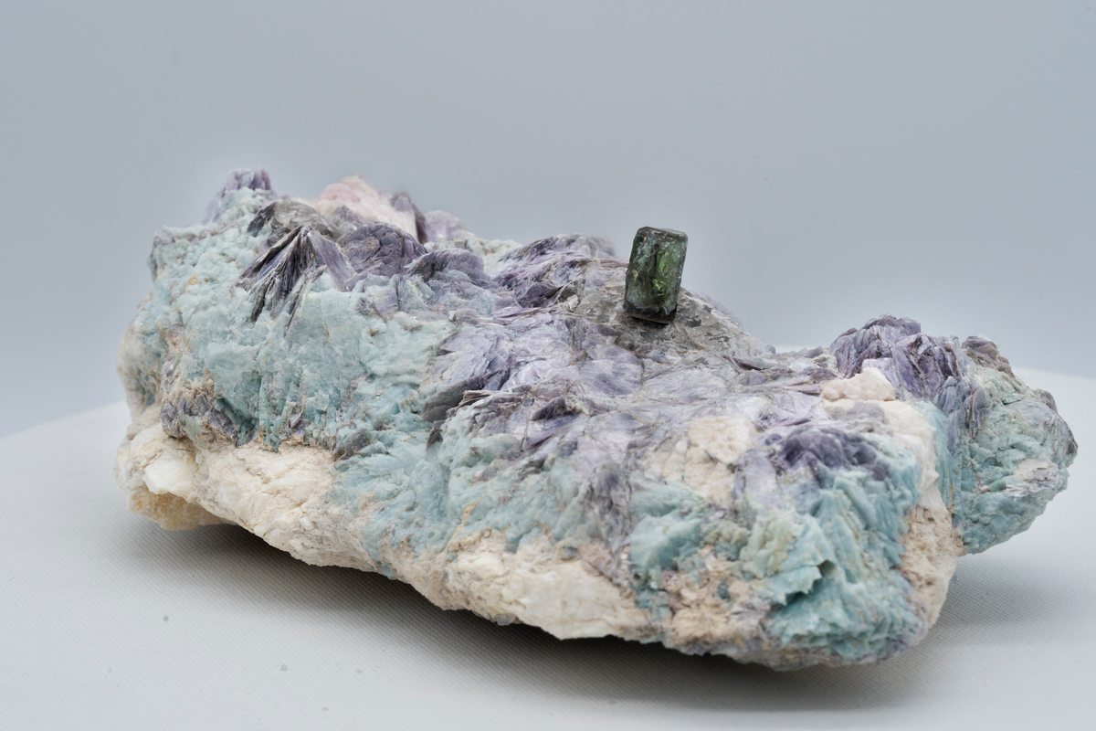 В экспозиции представлено более 70 образцов из турмалиновых пегматитов разных оттенков. Она знакомит не только с богатой палитрой минерала — от красных и розовых оттенков до зелёных, голубых и сине-фиолетовых, но и с местами добычи и геологическими условиями формирования камня, с искусством обработки и огранки. Малханское месторождение цветного турмалина является уникальным и единственным объектом в России, с которого поставляется коллекционный, кабошонный, ювелирный ограночный турмалин.