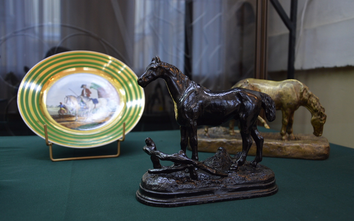 К наступающему году Лошади также работает тематическая выставка в основном здании музея. Эти животные часто становились главными героями различных произведений изобразительного искусства. Например, были представлены в изделиях старейших заводов России по изготовлению фарфора — завод Гарднера (неглазурованная скульптура) и Императорский фарфоровый завод.