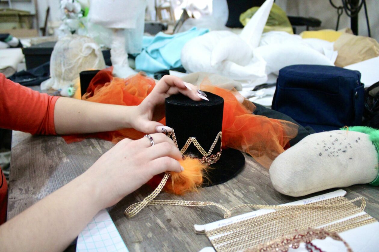 Анастасия Карамышева, художник-постановщик спектакля, отмечает, что постановка выстроена как единый мир: это пространство винтажного театра и ярмарки, где классическая сказка соединяется с современным сценическим языком. Персонажи созданы в эстетике цирка и балагана: Карабас-Барабас предстаёт дрессировщиком, Кот Базилио — клоуном, каждый образ подчёркивает характер отдельного героя.