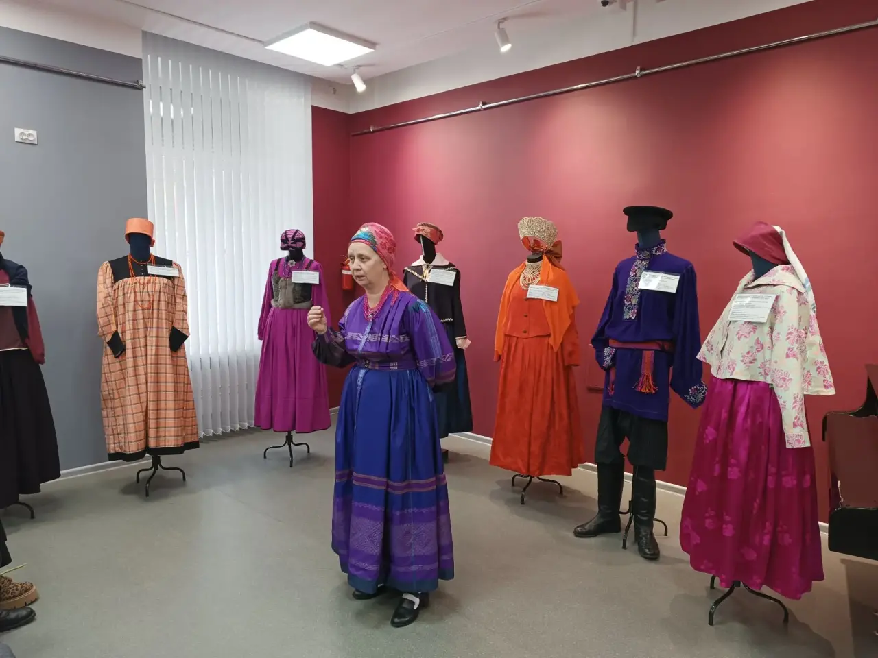 Экспозицию представили руководитель проекта и исполнительный директор Союза мастеров «Оникс» Елена Гусева, ведущий эксперт-реконструктор Светлана Ерёмина и мастер-наставник Галина Усова. Авторы рассказали о ценности представленной коллекции для сохранения региональной культурной идентичности, о сложностях, связанных с воссозданием костюмов, о кропотливом, но увлекательном процессе восстановления деталей и подбора материалов.