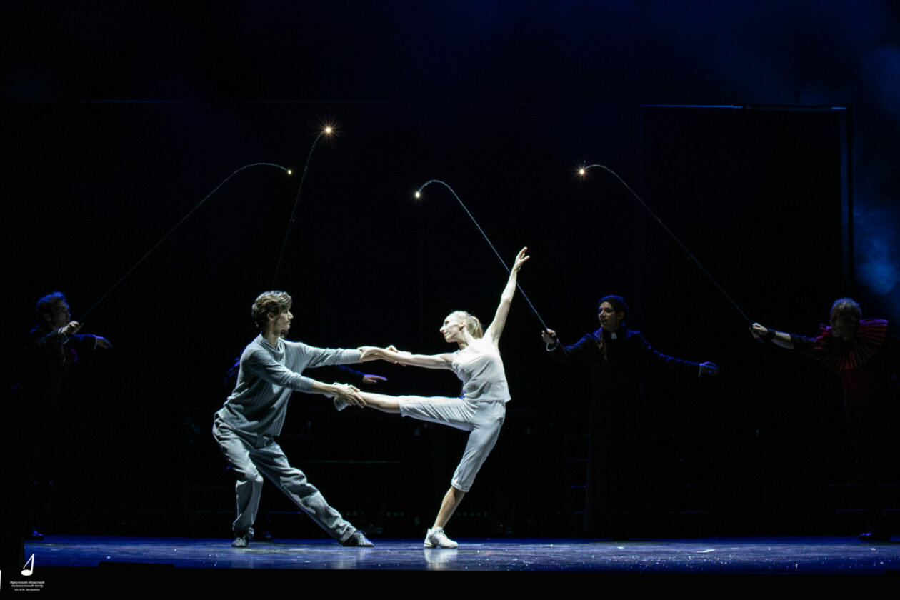 Здесь особенный актёрский каст. Мы проявили дерзость — смешали балетных и небалетных артистов. В этом проекте все взяли для себя очень высокую планку — и артисты, и постановщики. Получился синтез, во-первых, а во-вторых, какие-то интересные смысловые объёмы. Было интересно, когда артисты, которым привычно общаться словами, вдруг лишились этого арсенала, а балетных я, наоборот, провоцирую, чтобы они думали, говорили, звучали. Такой получился эксперимент, интересный сплав