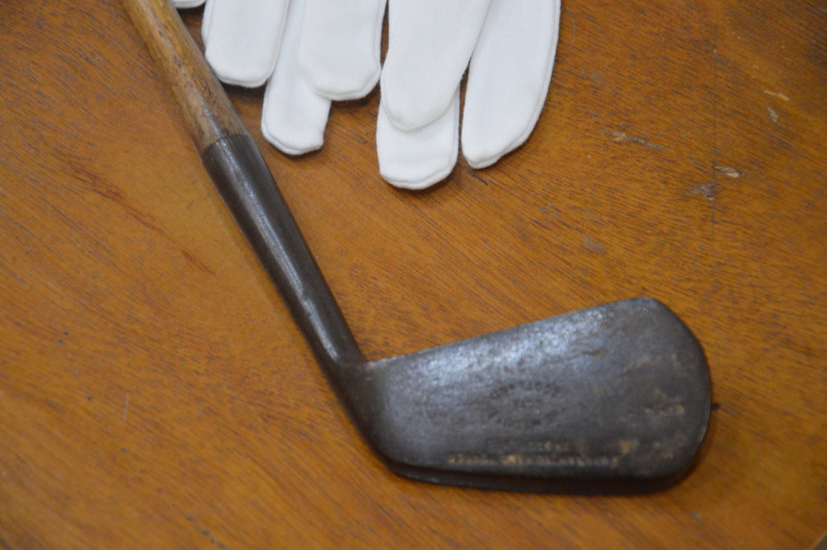 Ещё одна новинка — настоящая шотландская клюшка конца XIX века, которая станет прекрасным дополнением к костюму гольфиста, уже представленному на выставке «Портрет-а-порте». Её решил преподнести в дар заместитель полномочного представителя президента России в Сибирском федеральном округе Олег Денисенко, посетив экспозицию летом. Как отмечают в музее, чиновник был так впечатлен, что выразил желание заменить один из современных предметов на подлинный. Спортивный снаряд сделан из ценных материалов в Шотландии, где и зародился гольф.