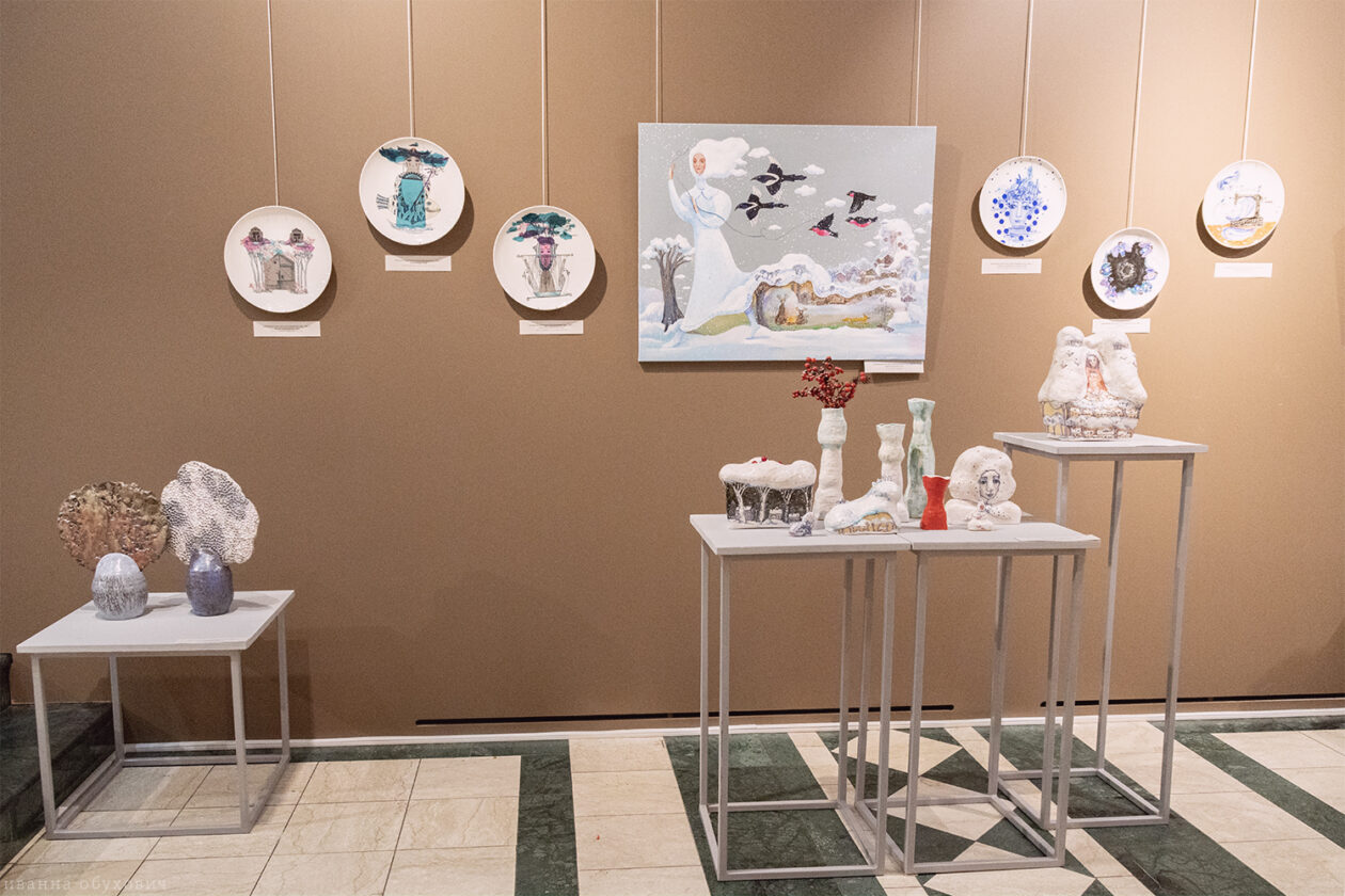Выставка «2х2» открылась 14 января в Галерее сибирского искусства. Две творческие пары представили около 100 произведений керамики, графики и живописи.