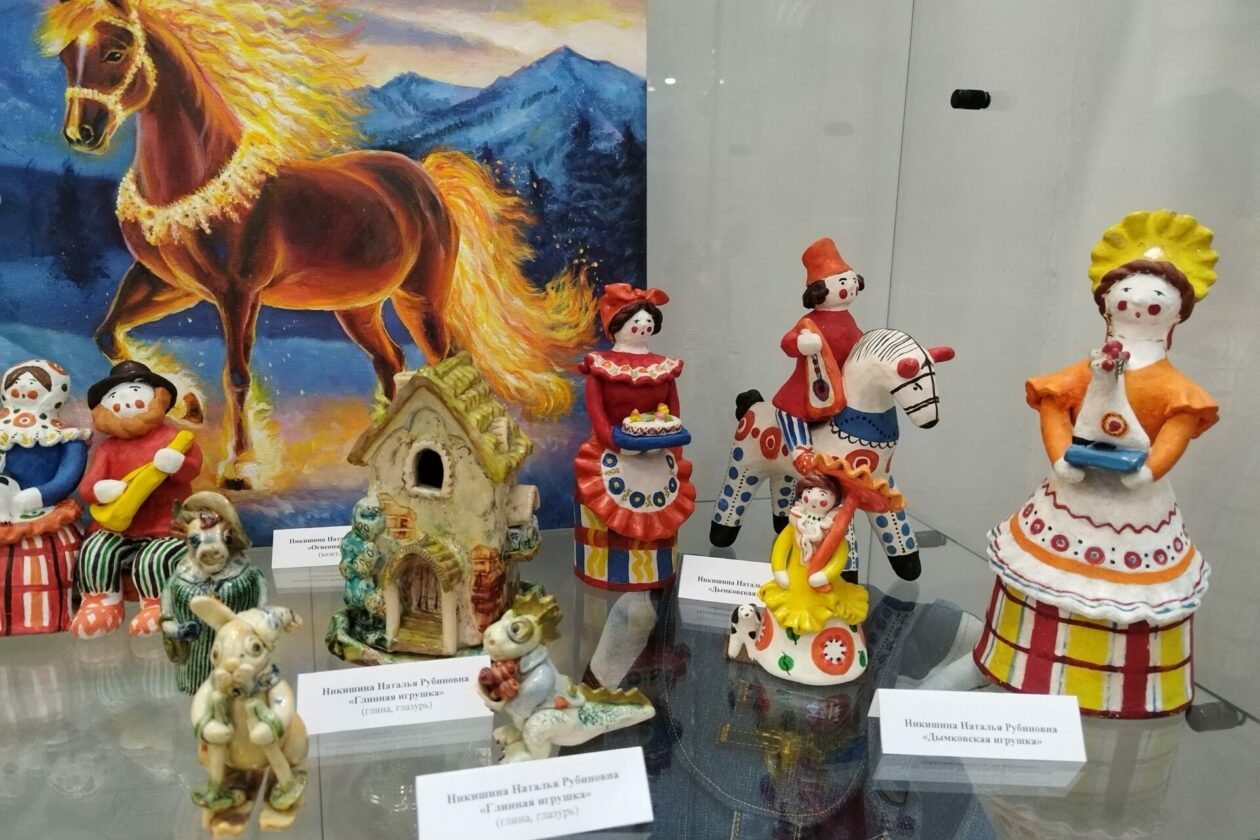 Никогда ранее не было в экспозициях Художественного центра цветов из холодного фарфора, которые представила мастер Ольга Ткачева. Впервые выставлены дымковские игрушки керамиста Натальи Никишиной. В числе пяти новых мастеров, которые стали участниками выставки, Александр Горошко с декоративной росписью шкатулок. Интересны ватные игрушки Ирины Татарниковой, выполненные в виде статуэток. Впечатляют шкатулки Марины Выгузовой в технике папье-маше.